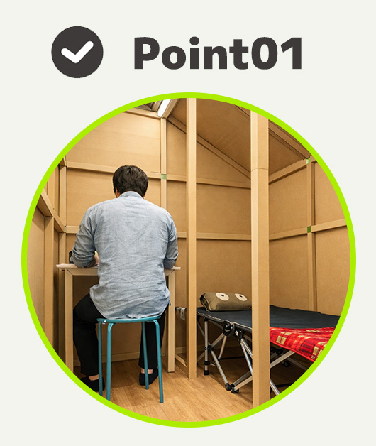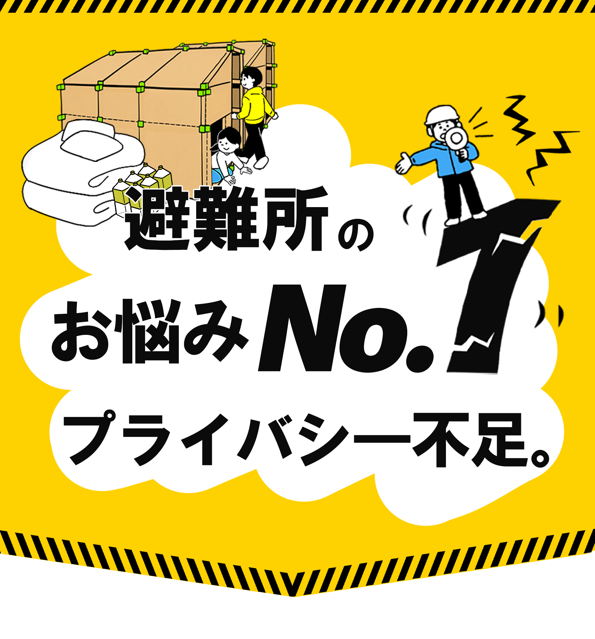 避難所ではどうしても周囲の視線が気になりますが、段ボールで区切られた空間があるだけで気持ちが全然違います。