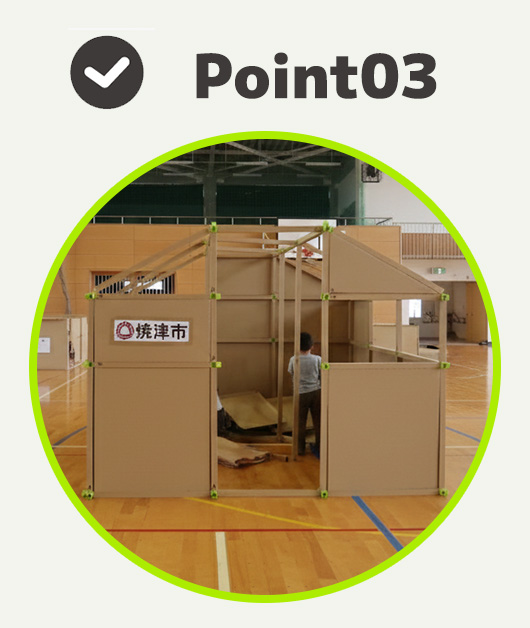 また、避難所備品は「何用か」が決まっているものが多いですが、この段ボールハウスはその時の状況に応じて使い方を変えられる。現場判断で動ける余地がある点が助かります。